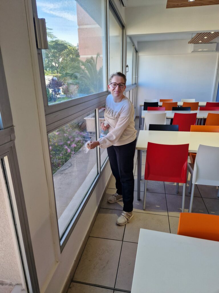Le mardi toute la journée les jeunes s’initient aux métiers de l’hôtellerie et de la restauration. Le jeudi matin au sein de l’ESAT Jean Médecin ils sont inclus, selon leur projet, au sein de l’atelier entretien des locaux, des ateliers internes (conditionnement) ou en restauration
